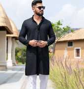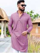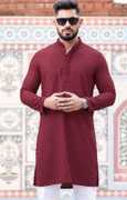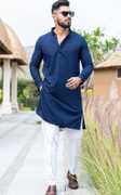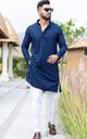 swara creation Men Chikan Embroidery Straight Kurta (Dark Blue)