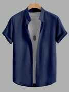Men Comfort Fit Fit Solid Cut Away Collar Casual Shirt