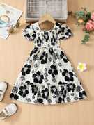 Upgrade your princess’s wardrobe with this stylish black & white floral print frock dress. Featuring puff sleeves, a smocked elastic chest for a perfect fit, and a flared bottom with ruffle detail, this frock blends fashion with comfort. Designed from soft breathable fabric, it ensures all-day ease while keeping your child looking fashionable.Trendy girls’ frock in black & white floral print with puff sleeves and smocked chest design. Soft, breathable fabric for comfort and style.Perfect for parties, birthdays, festive functions, or casual outings, this frock is versatile and trendy. Available in sizes 7-8Y, 9-10Y, 11-12Y, 13-14Y, and 15-16Y, making it suitable for kids and teens alike.