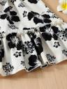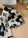 Girls’ Black & White Floral Print Frock Dress | Puff Sleeve Party Wear & Casual Wear Dress for Kids