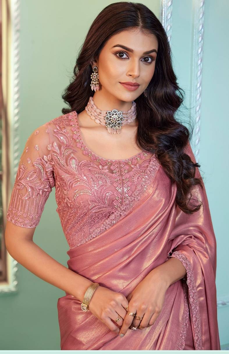 Sequin embroidered, Zari border, Festive Look, Night Party, Net, Heavy Designer Look, Bling Cocktail