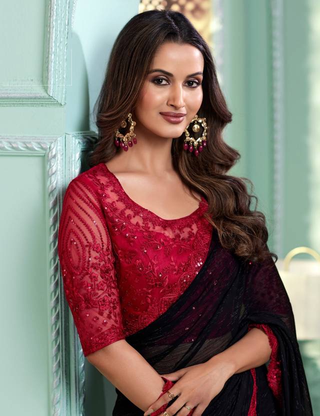 Beautiful Women's Georgette,Chiffon,Silk Sequence Work Embellished Saree With Georgette Blouse