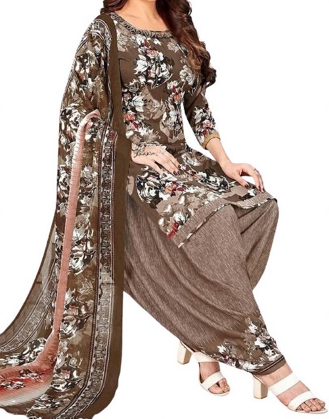 Flaunt a new ethnic look with this dress material. This Italian Leon Crepe suit is beautifully adorned with Print work comes along with solid Italian Leon Crepe bottom and martina chiffon dupatta makes it appear more adorning. Women can buy this suit to wear for their upcoming festivals, homely functions, parties, kitties, weekend get together. Get this unstitched suit stitched according to your fit and comfort. Team it with stylish accessories to make your looks more beautiful. Note:- The actual product may differ slightly in color and design from the one illustrated in the images when compared with computer or mobile screen.