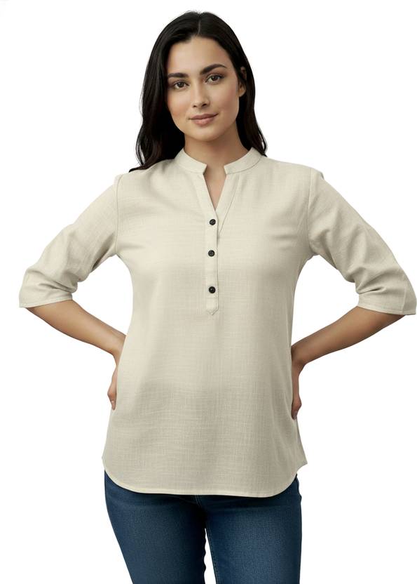 Swaroopi Casual Solid Women Beige, White Top