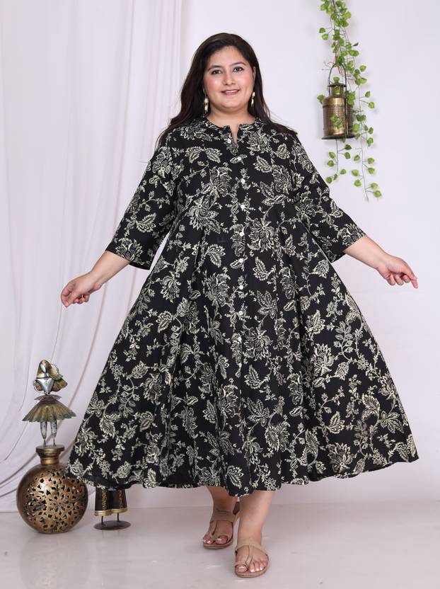 Swasti Women Floral Print A-line Kurta (Black)