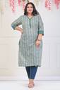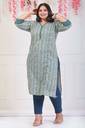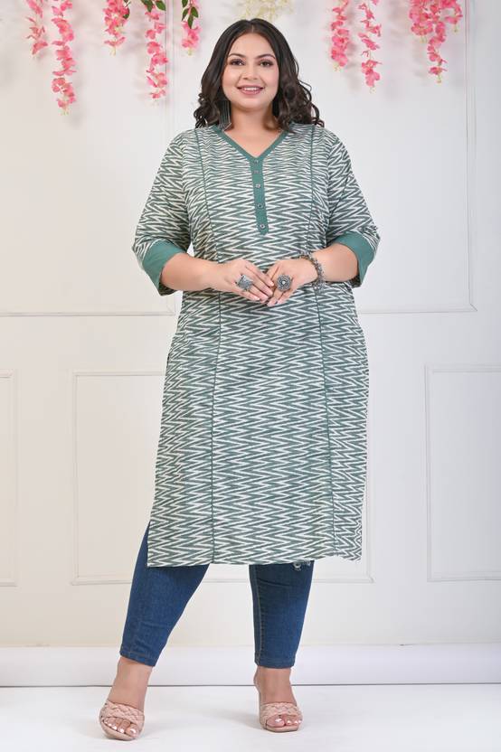 The Swasti Plus Size Women's Straight Beautiful Floral Print Cotton Kurta is a stunning garment designed for style and comfort. Made from high-quality cotton fabric, it is tailored to suit the needs of plus-size women. The kurta features a straight silhouette that flatters the body shape and offers a relaxed fit. Adorned with a vibrant floral print, it adds a touch of femininity and elegance to any outfit. The soft and breathable cotton material ensures all-day comfort, making it perfect for casual or semi-formal occasions. With its beautiful design and inclusive sizing, this kurta is a must-have addition to any plus-size woman's wardrobe.