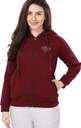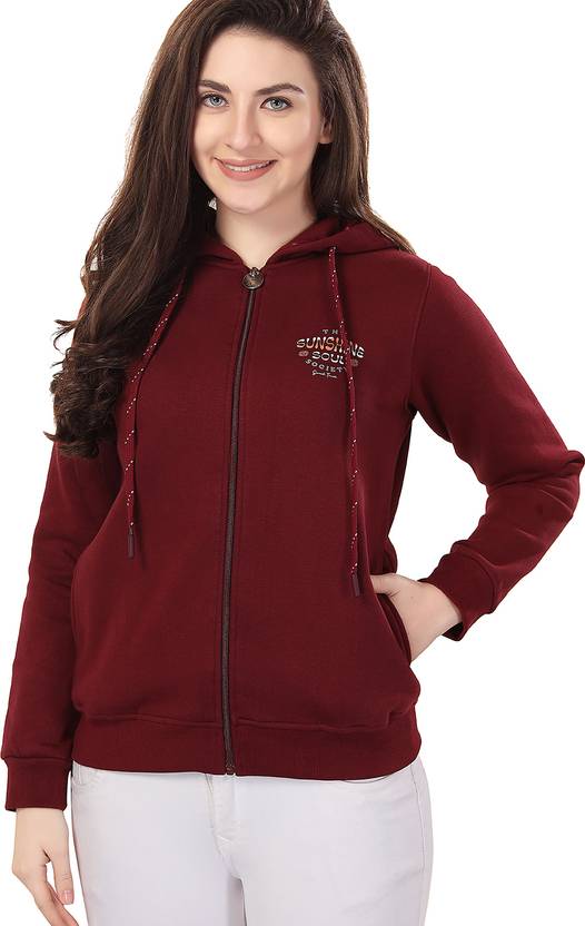 Sweet Touch Women Typographic print hooded sweathirt has logo on chest with zip closure & straight hem