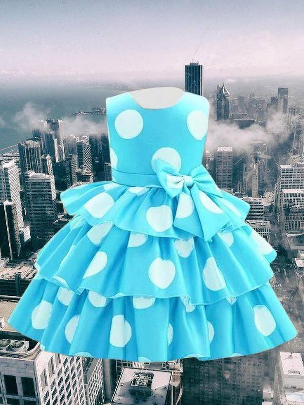 Girls Midi/Knee Length Party Dress (Blue, Sleeveless)