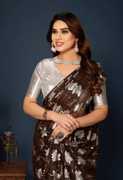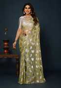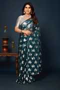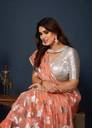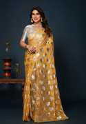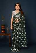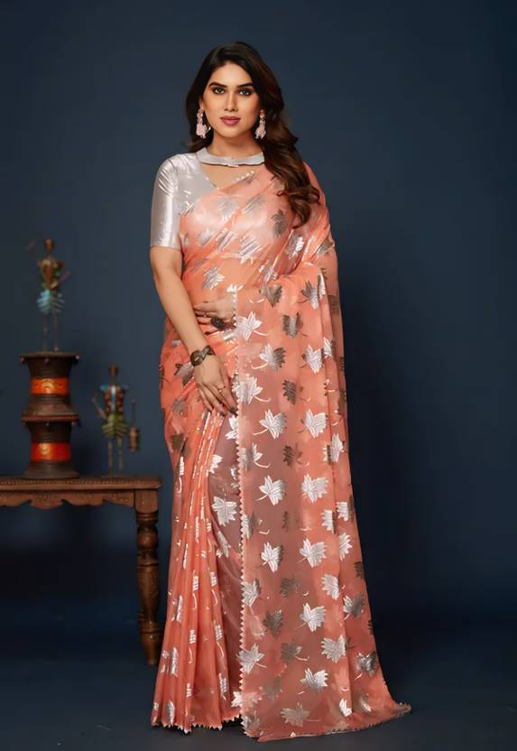 Sweg Bee Floral Print Narayanpet Silk Blend Saree (Orange)