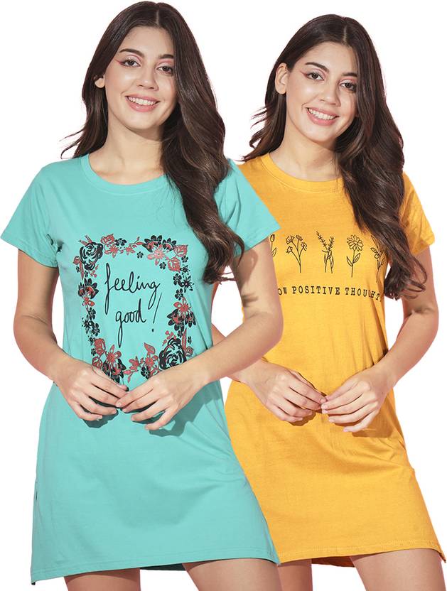 SwellSwag Self Design Women Round Neck Blue, Yellow T-Shirt