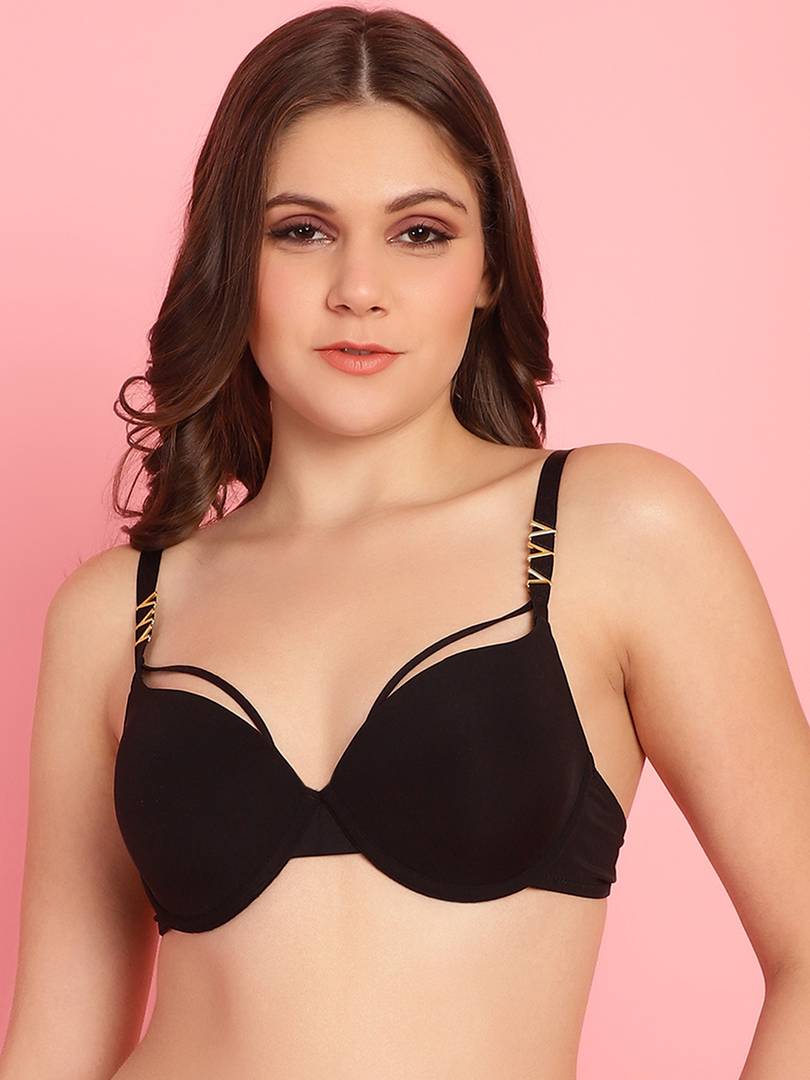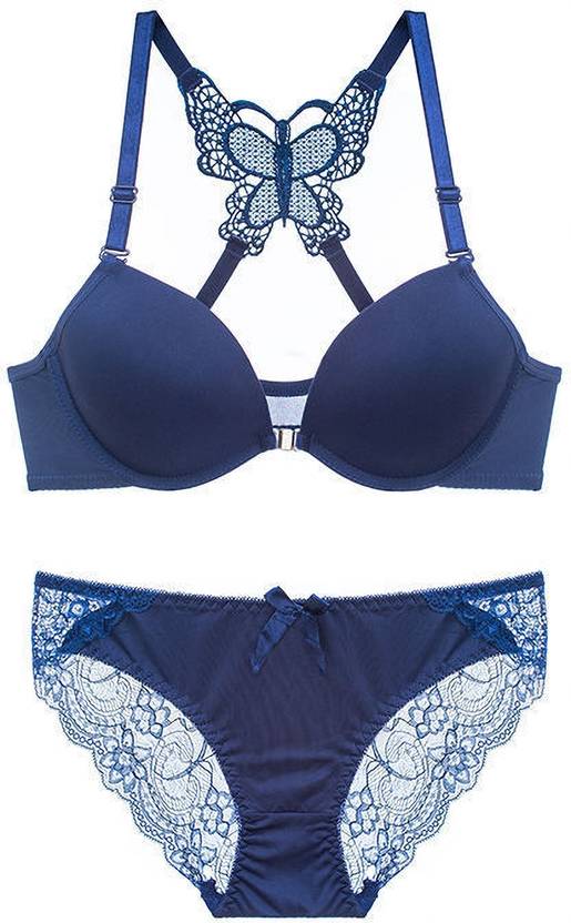 New Latest Look Net Blue Lingerie set with matching panty, is padded with soft pads which enhances the shape and it has underwire support too.It has Print on cups with cute bow in centre that complements its look.