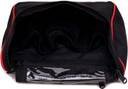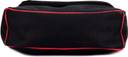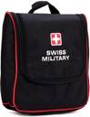 The flap of the kit bears the Swiss Military logo on the contrasting background. The red piping complements the textured black background well, while the sturdy handle lets you carry the kit from one place to the other.