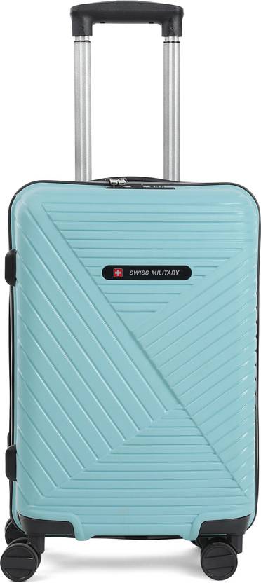 SWISS MILITARY Small Cabin Suitcase (55 cm) 4 Wheels - Zurich Hardtop Trolley Bag - Blue