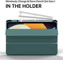~~ The tri-fold front cover can create a stable stand for the tablet under the strong magnetic connection. Ergonomic typing and observation table design to create a comfortable observation or keyboard stand for reading, sketching, viewing.