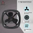 Sword 9 Inch Ultra High Speed Fresh Air Fan| S9FA-47 230 mm Exhaust Fan (Black)