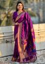 SWORNOF Woven Paithani Pure Silk Saree (Purple)