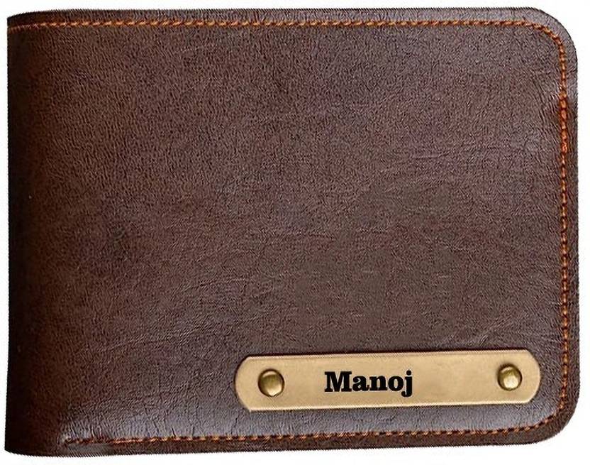 Manoj Name Wallet With Name Engraved on leather Stripe Awesome Gift for Boys and Self Use