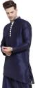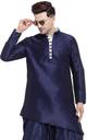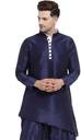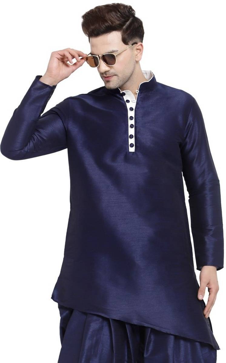 Men Solid Art Silk Asymmetric Kurta (Dark Blue)