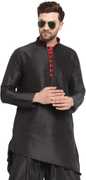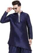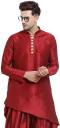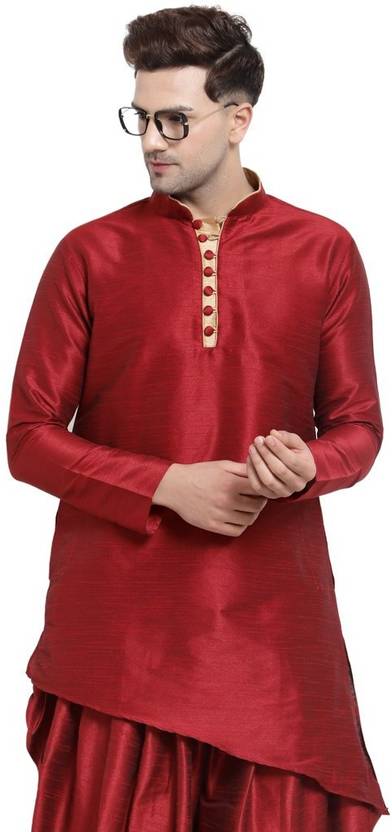 Men Solid Art Silk Asymmetric Kurta (Maroon)