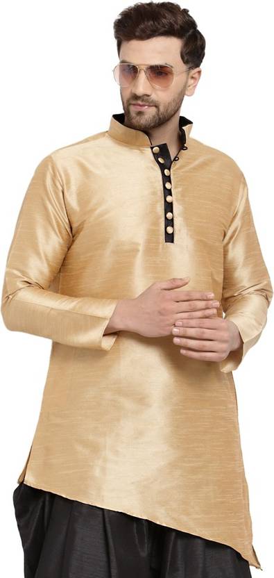 Sydney Heights Men Solid Asymmetric Kurta (Gold)