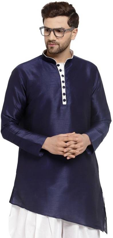 Sydney Heights Men Solid Asymmetric Kurta (Dark Blue)