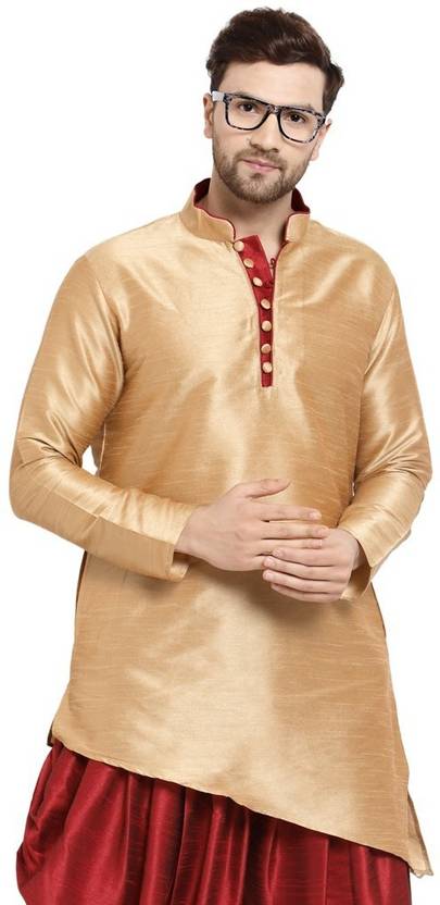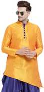 Sydney Heights Men Solid Asymmetric Kurta (Gold)