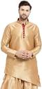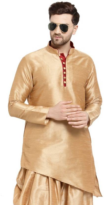 Men Solid Art Silk Asymmetric Kurta (Gold)