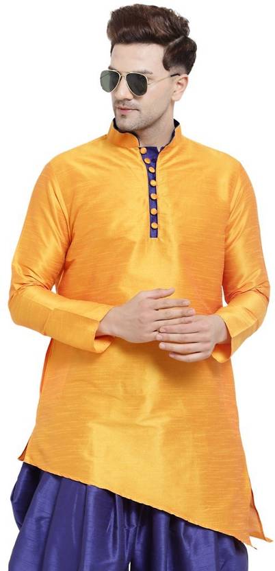 Sydney Heights Men Solid Asymmetric Kurta (Yellow)