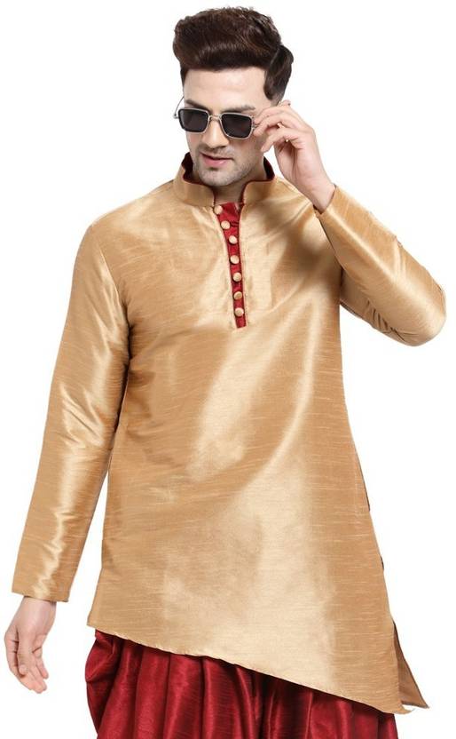 Sydney Heights Men Solid Asymmetric Kurta (Gold)