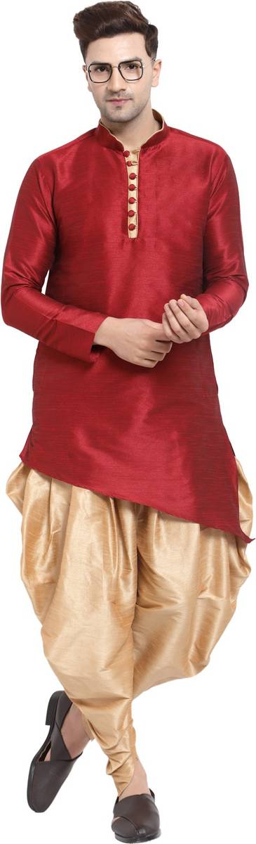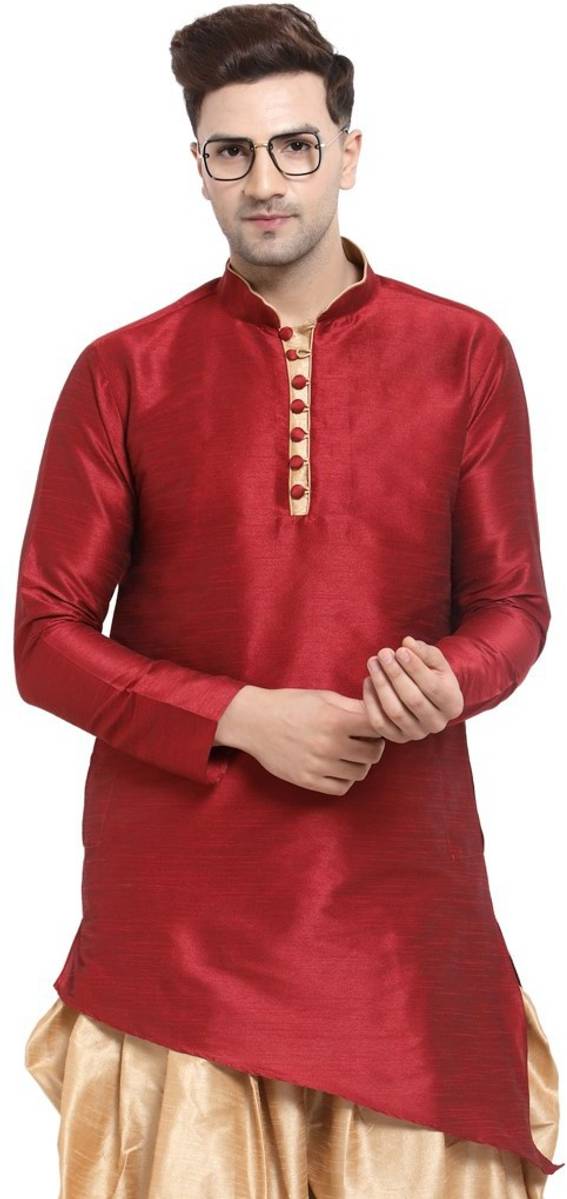Sydney Heights Men Solid Asymmetric Kurta (Maroon)