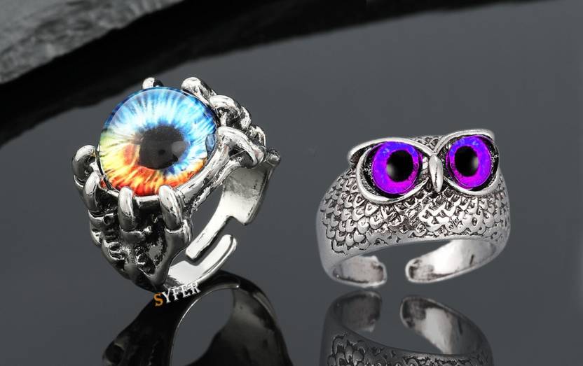 Evil Eye RIng & Owl Ring for Men and Women Stylish/Biker/Partywear Ring (Combo)