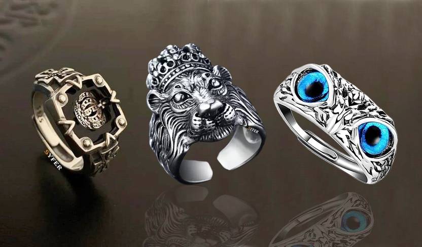 Lion Ring, Owl Ring, KIng Crown Ring for Men and Women (3 Rings Combo)