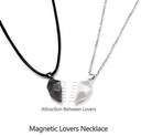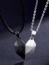 Syfer Matching Magnetic Heart Couples Pendant for Lovers, Valentine day Gift Black Silver Stainless Steel Pendant Set