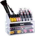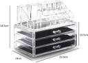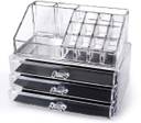 This sleek, durable professional acrylic line is both stylish and versatile. The 5 stair-step style tiers with side rails that will keep your items beautifully displayed and perfectly in place. Acrylic is clear as glass, looks exquisite, and does not chip like plastic. Designed to hold all your favorite makeup accessories and your best products including nail polishes, essentials oils, and many more to leave your room and bathroom clutter free. On your desktop,dresser,grocery store,shop, and bathroom, kitchen. Versatile cosmetic organizer rack & make up display rack, keeps your collections in one place and ready to get and use it. 3 large drawers can be removed completely for easy access. Removable liner helps keep jewelry in place. An all-in-one sleek cosmetic made of durable clear acrylic. A multi-functional display rack perfect for organizing your makeup and other items such as aromatherapy and essential oils, or small craft bottles. Organize your lipsticks, lipliners, foundations, concealers and more on this acrylic makeup organizer. Professional quality cosmetic and make up organizer with crystal clear shelves and removable drawer to provide maximum visibility for your cosmetic collection and other make-up things.