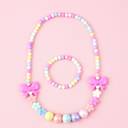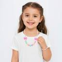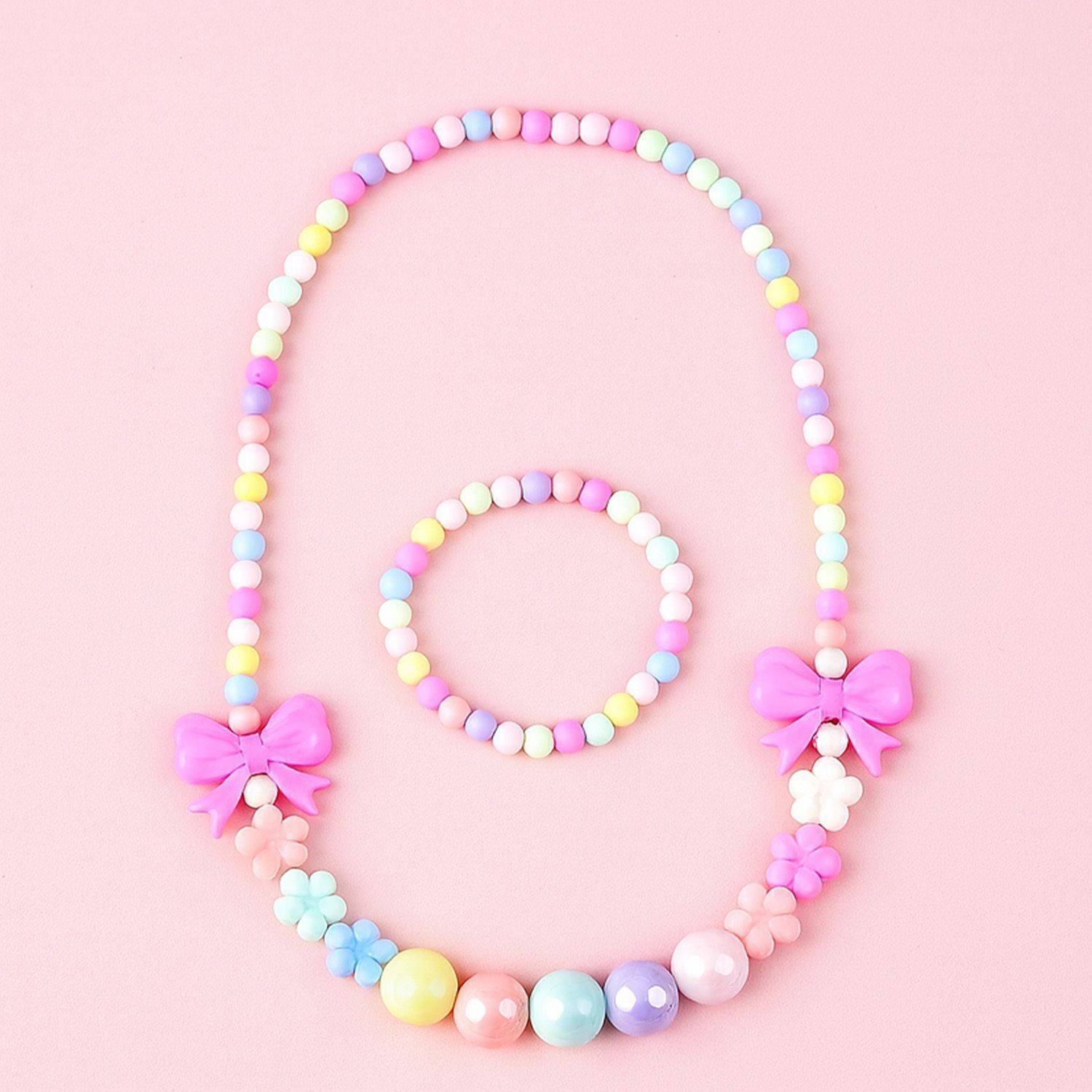 This charming kids' necklace and bracelet set features a playful mix of pastel beads in soft hues, creating an adorable and colorful accessory for children. Crafted from high-quality, non-toxic plastic, it offers a smooth surface that is safe and comfortable for little ones to wear. The set includes a matching necklace and bracelet, making it perfect for dress-up, parties, or everyday wear to add a pop of color and fun to any outfit. This beaded jewelry set is also a delightful gift choice for young children who love with safe and durable jewelry.