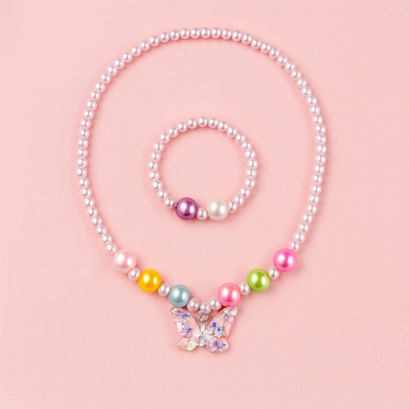 This charming kids' necklace and bracelet set features a playful mix of pastel beads in soft hues, creating an adorable and Light Pink accessory for children. Crafted from high-quality, non-toxic plastic, it offers a smooth surface that is safe and comfortable for little ones to wear. The set includes a matching necklace and bracelet, making it perfect for dress-up, parties, or everyday wear to add a pop of color and fun to any outfit. This beaded jewelry set is also a delightful gift choice for young children who love to with safe and durable jewelry.