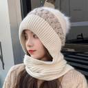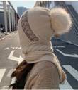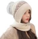 Attached to the hat is a matching knitted scarf. The scarf is designed to keep your neck and shoulders warm, providing extra protection against the cold wind.