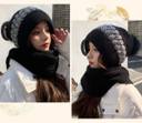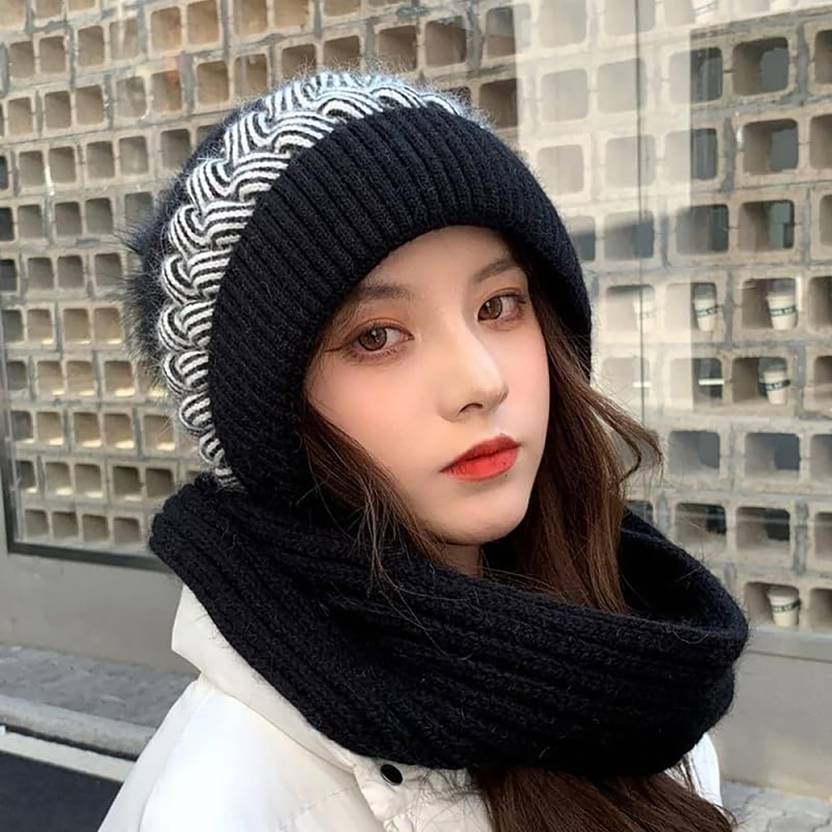 Attached to the hat is a matching knitted scarf. The scarf is designed to keep your neck and shoulders warm, providing extra protection against the cold wind.