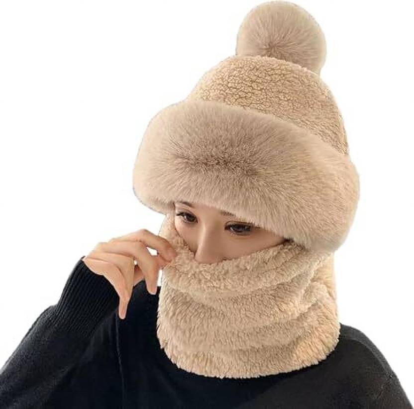SYGA Balaclava Cap Face Cover For Women Winter Cap warm and stylish this winter with our Women's Winter Cap. Made from a soft and fluffy material, this hat will keep you comfortable all day long. The fur pom pom adds a touch of style, while the earflaps protect your ears from the cold. The stretchy fit accommodates most head sizes, and the variety of colors available means you can find the perfect one to match your outfit.