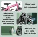 SYGA 14-inch kids' bicycle is a perfect choice for toddlers and young children, typically aged 3 to 5 years old, who are taking their first steps into the world of cycling. These bicycles are designed with utmost care to provide a safe, comfortable, and enjoyable riding experience for the little ones. A 16-inch kids' bicycle is the next step for children aged 4 to 6 years old who are ready to graduate from smaller bikes and embark on more exciting cycling adventures. These bikes offer a bit more height and stability compared to their 14-inch counterparts, making them an ideal choice for slightly older and taller kids. Safety is a top priority in the design of these bikes, with features like chain guards to prevent clothing from snagging, reflectors for enhanced visibility, and often padded handlebars for added protection. Coaster brakes, which engage by pedaling backward, are commonly used, but some models may introduce a front hand brake to teach kids the basics of hand brakes. With 16-inch wheels, these bicycles strike a balance between confidence-building stability and maneuverability. The frames are built to withstand the active play of young riders, typically crafted from sturdy steel or lightweight alloys to ensure durability.
