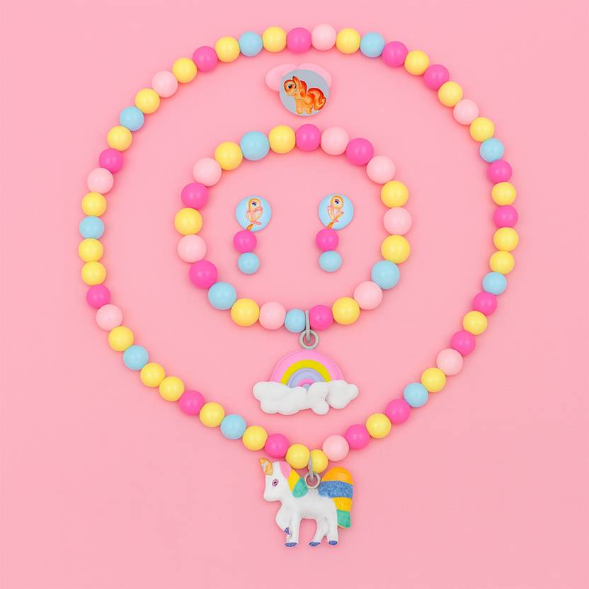 SYGA Children's Colorful Necklace Spot Jewelry Alloy Necklace Bracelet Ring Princess Earrings 5Pcs Set For Kids, Girl, Gift, Party
