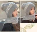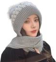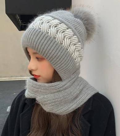 Attached to the hat is a matching knitted scarf. The scarf is designed to keep your neck and shoulders warm, providing extra protection against the cold wind.
