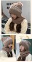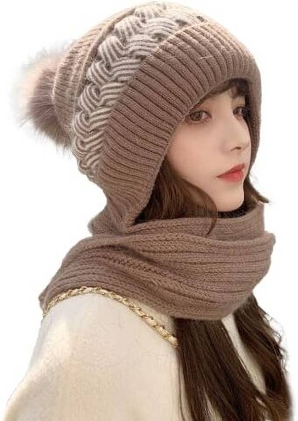 Attached to the hat is a matching knitted scarf. The scarf is designed to keep your neck and shoulders warm, providing extra protection against the cold wind.