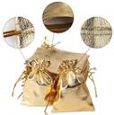 1. Can be used for holiday wedding celebration gift packaging 2. Can be used to hold wedding small gifts, sweets, chocolates, and also suitable for storing beads and other items of jewelry. 3. Come with a drawstring to make the bag easy to open and close. 4. Using these gift bags for wedding favors, party favors, goody bags, car pendant, suitable for dice, decorations, bracelets, Buddha bead necklaces, watches, rings, jewelry, jade, cosmetics, perfume, incense, flowers, candy, gift packaging Specification: 1. Size: 13cm x 18cm 2. Color: Golden/Silver
