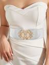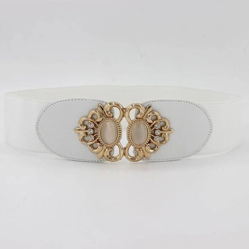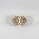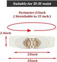 Women Cinch Belt, PU Leather Stretchy Waist Belt with Pearl Studded Metal Buckle, Retro Style,White - 60-65cm