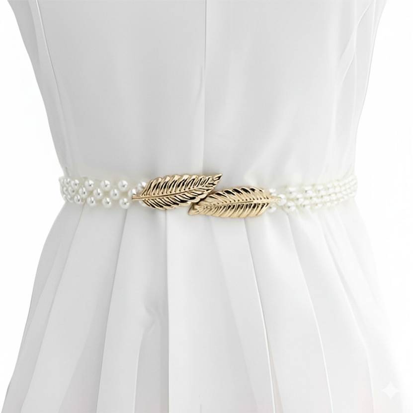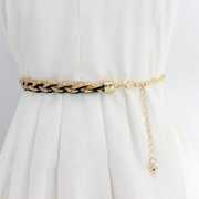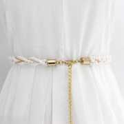 Pearl Waist Chain Belt Braided Golden & Black - Swivel Buckle Cinch Closure