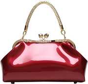 Women's Glossy Patent Leather Handbag Kiss Lock Purse Top Handle Handbag