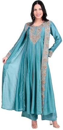 Step into the wedding and festive season with elegance and grace in this stunning Silk Blend Anarkali Gown. Made from a luxurious silk blend fabric, it offers a rich sheen and soft comfort, ideal for long celebrations and traditional functions.