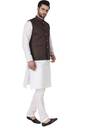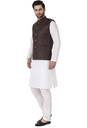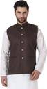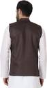 With its classic design, this men's solid textured Nehru jacket exudes timeless elegance. It's the ideal choice for a range of occasions, from festivals and weddings to religious ceremonies and parties. Moreover, the traditional styling, complete with a mandarin collar, imparts a sophisticated, sleek look, making it an essential addition to your traditional wardrobe.