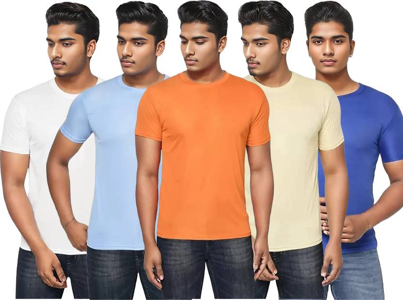 SM SHAYAM CREATION Pack of 5 Men Solid Round Neck Polyester Multicolor T-Shirt